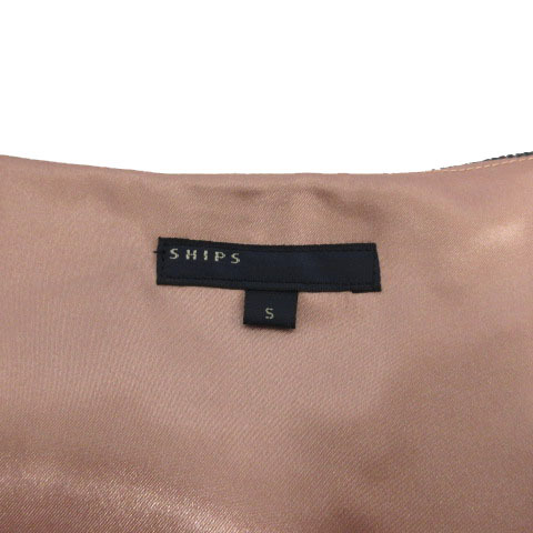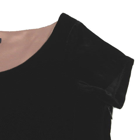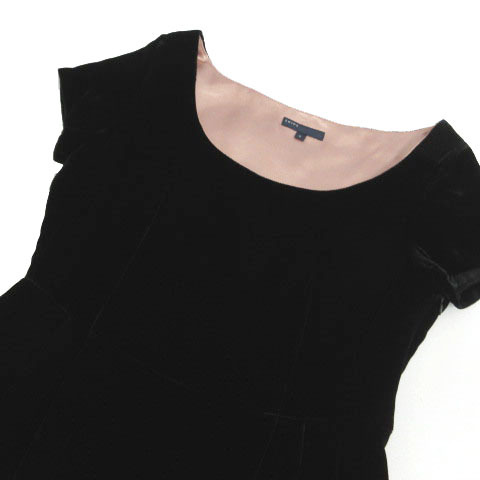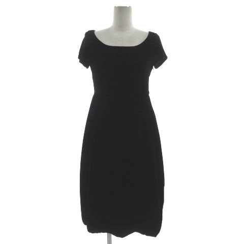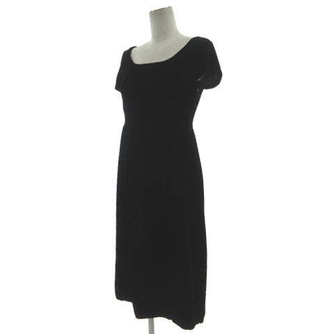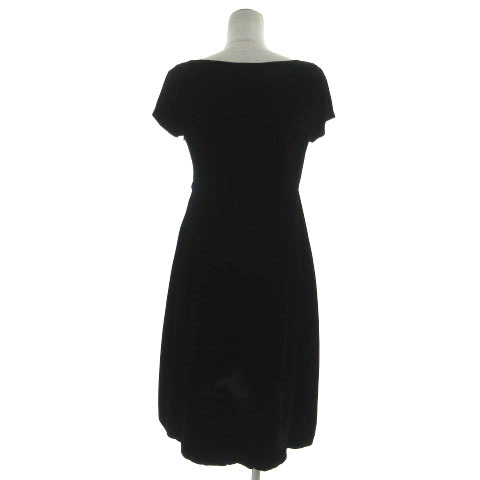 シップス SHIPS ワンピース フォーマル ボートネック フレンチスリーブ ミディ丈 バルーン調 ベロア シルク混 日本製 ブラック 黒 36