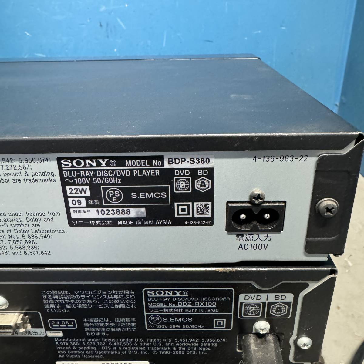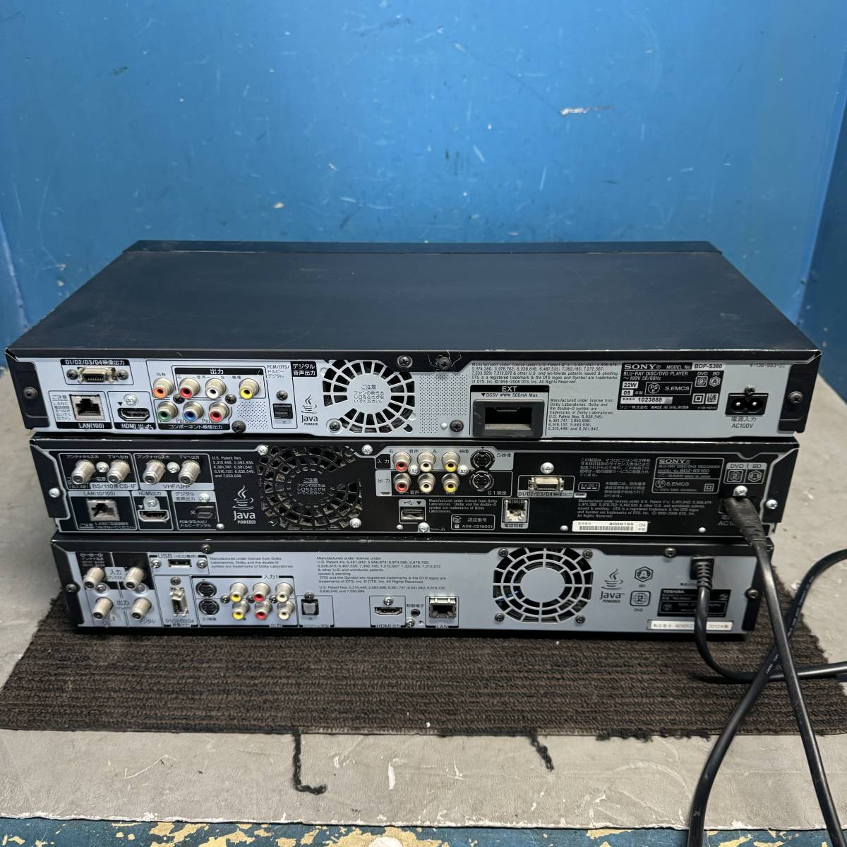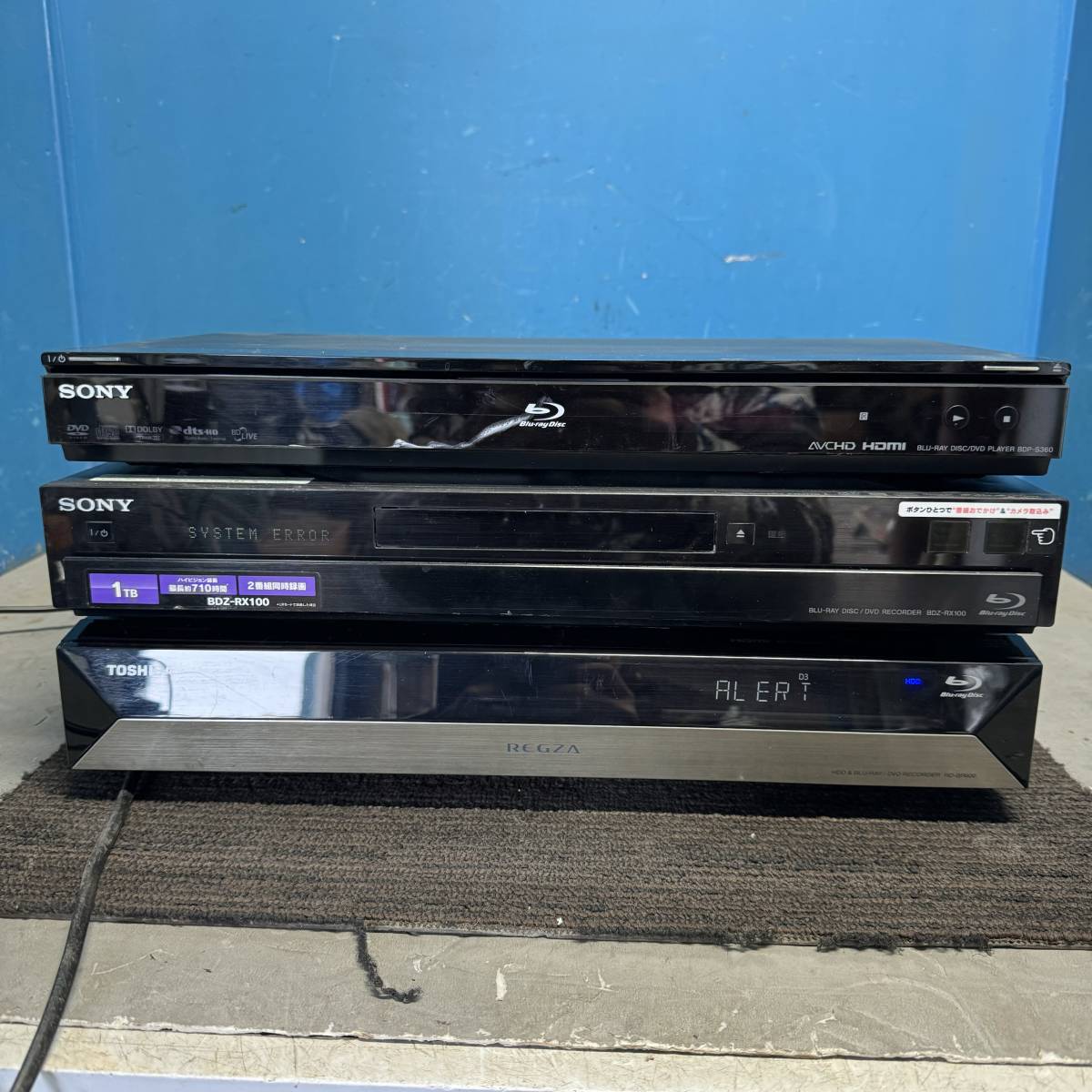 状態 SONY(BDP-S360) 通電のみ、開閉しません TOSHIBA(RD-BR600)通電のみ、システムエラー表示 SONY(BDZ-RX100)ディスク読取出来ません |