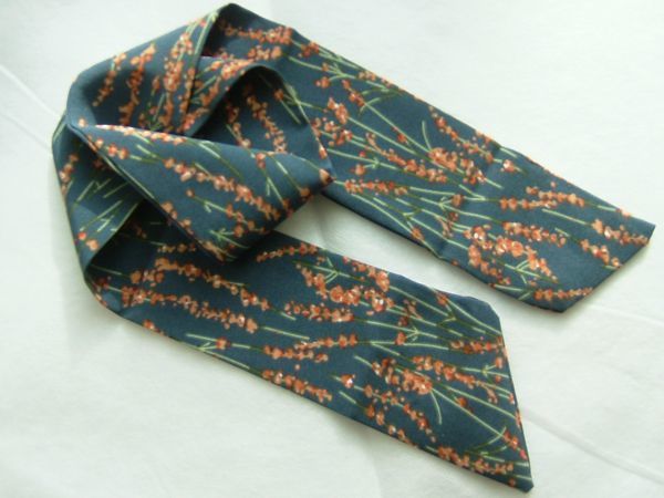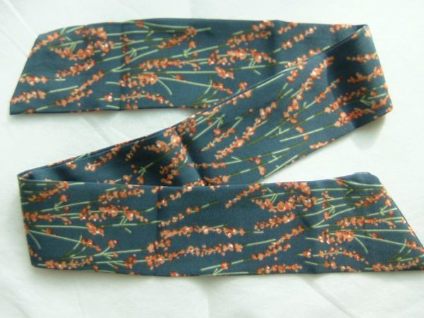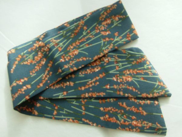 花柄ネックリボン 紺 首に巻く バッグ飾り ヘアリボン ベルトなどに