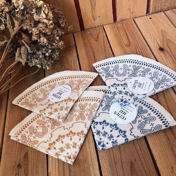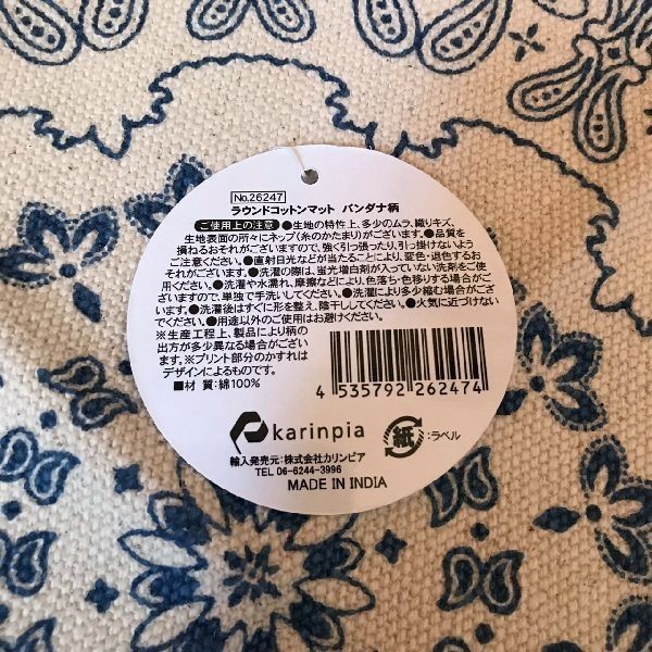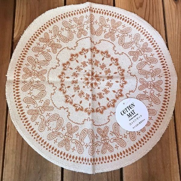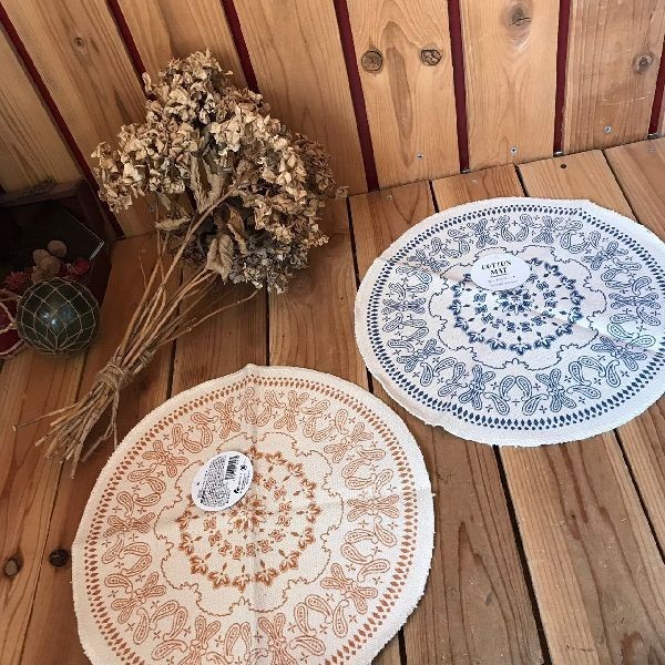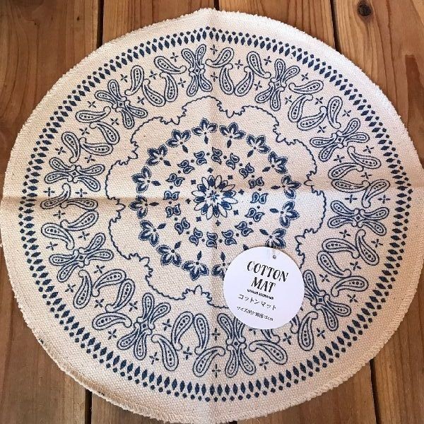 送料無料 未使用 タグ付 バンダナ柄 ラウンド コットンマット 丸型 インド綿 ランチョンマット 2色4枚セット 直径35㎝ ランチクロス