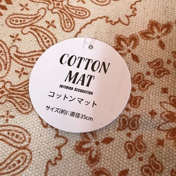 未使用タグ付おしゃれなバンダナ柄ラウンドコットンマット丸型インド綿ランチョンマット2色4枚セット直径35㎝テーブルマットランチクロス円