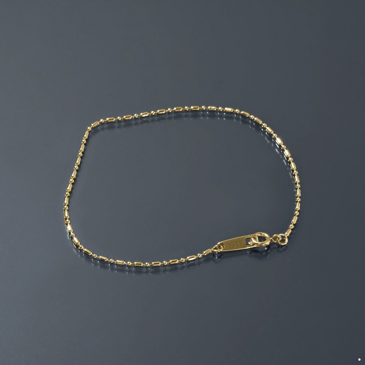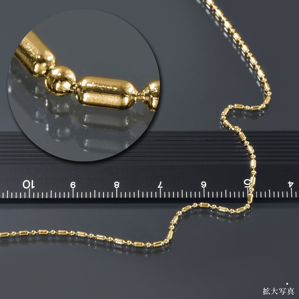 変形ボールチェーンは俵型のバーとボール(玉)が交互に連なり、通常のボールチェーンと比べるとアクセントのあるブレスレットです。棒と球のパーツが連なるので(BAR×ROUND)、BRチェーンと商品名に付いております。 ※こちらのチェーンは絡まりにくく万が一絡まってしまったとしても解きやすいデザインです。 ※イオンプレーティング(IPメッキ)とは、金属イオンと不活性ガスを反応させた化合物を製品に蒸着させるコーティングで、ガスの比率でカラーを調整します。従来の鍍金加工に比べて表面耐久性、密着性、工程の安全性が飛躍的に向上しております。 |
