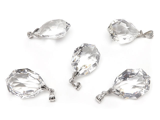天然水晶 クリスタルクォーツ ペアシェイプカット ペンダントトップ 25×18mm[ロジウム]【1コ販売】 / 65-1 CQ19-X