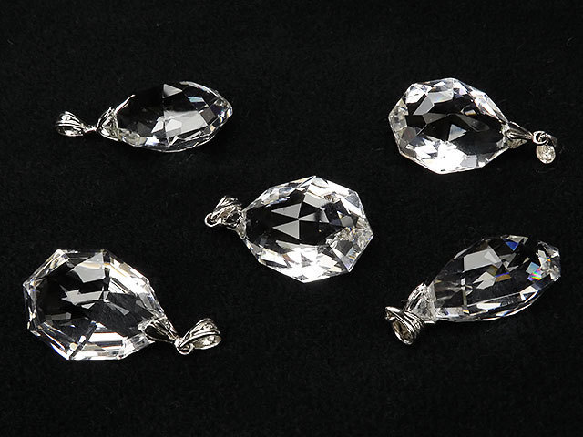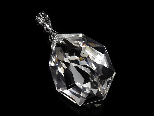 施されたカットによる輝きが魅力的な天然水晶クリスタルクォーツのペアシェイプカットペンダントトップです。
