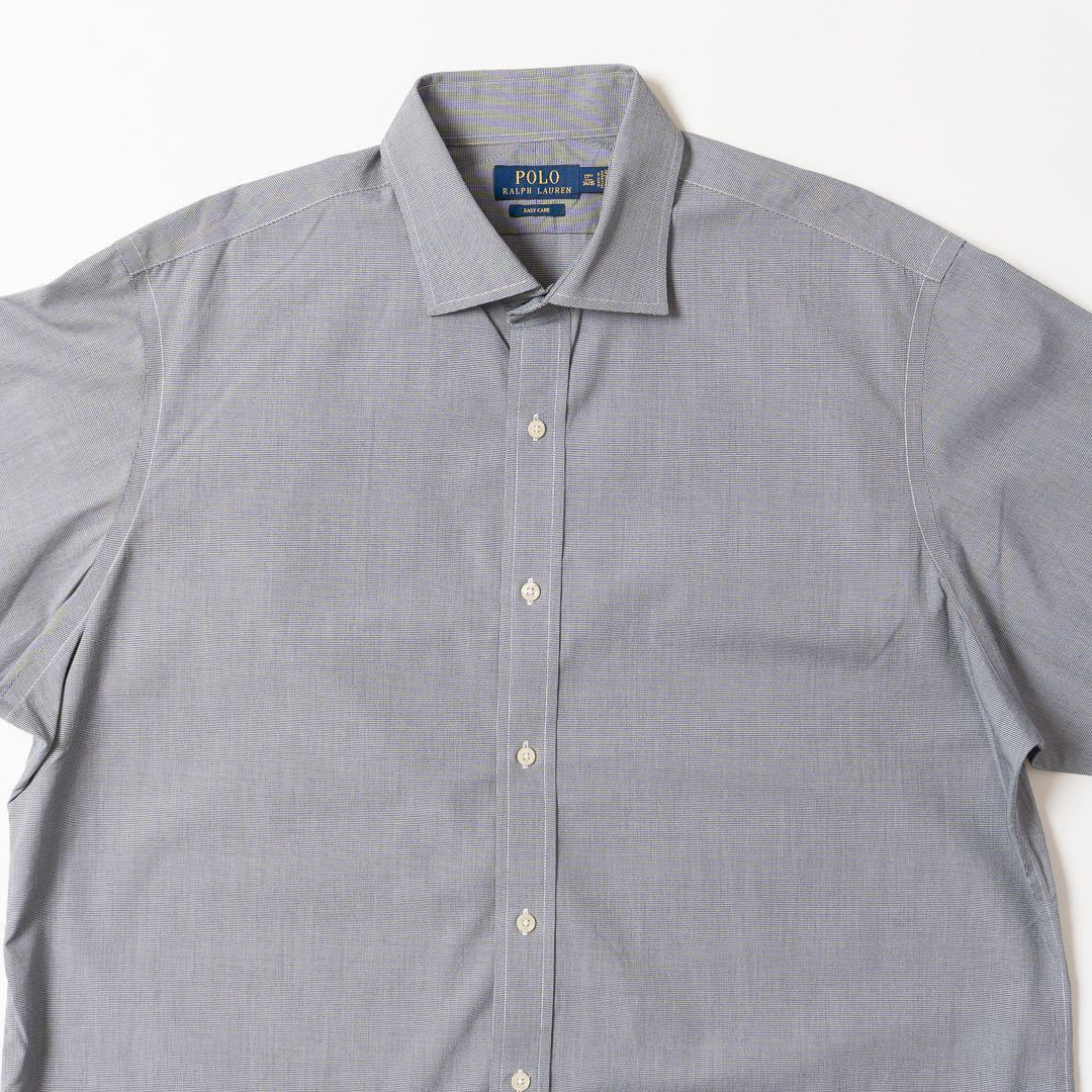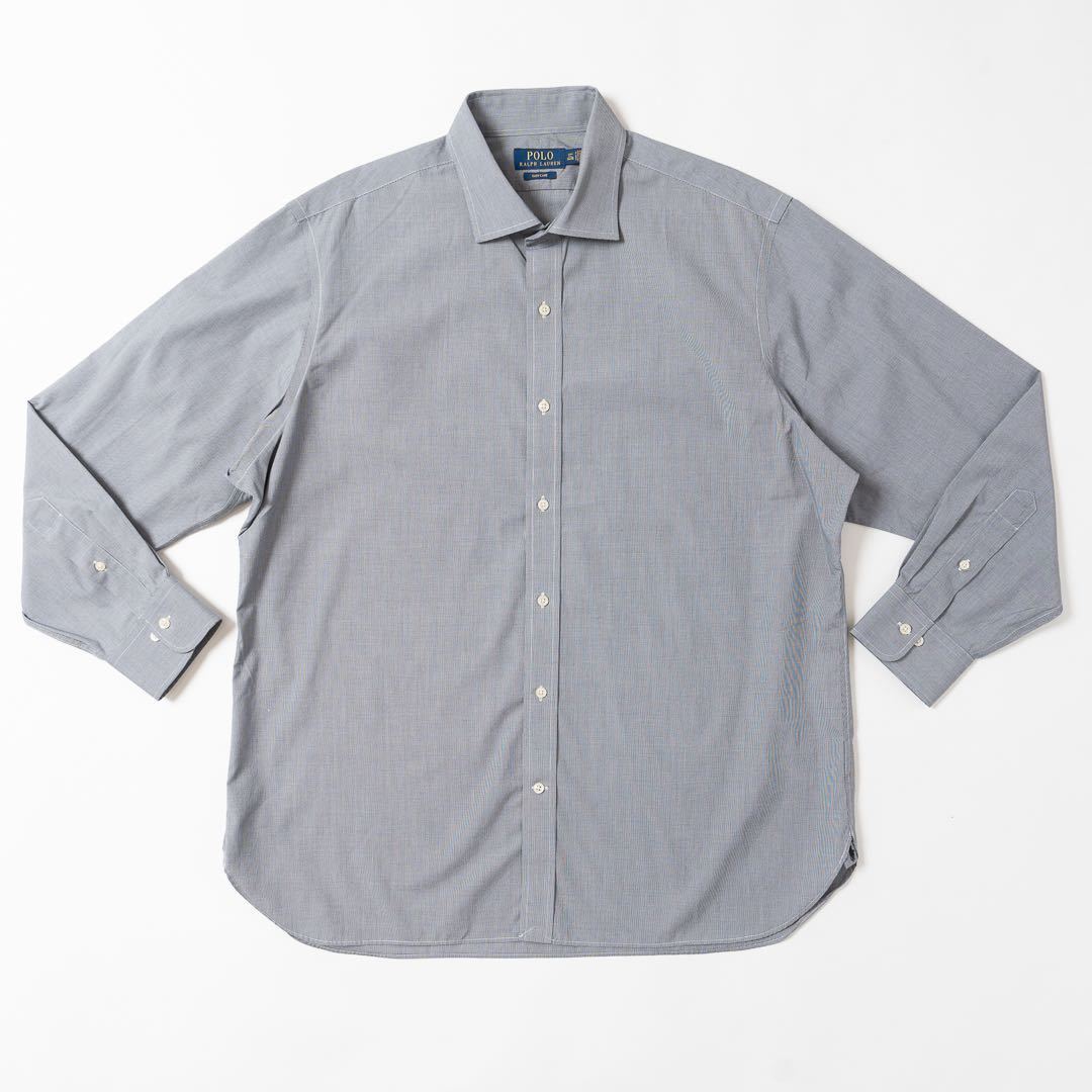 一見無地のグレー生地のようですが、近くで確認すると細かな織り生地を使用しており、RALPH LAURENらしい上品なシャツです。
