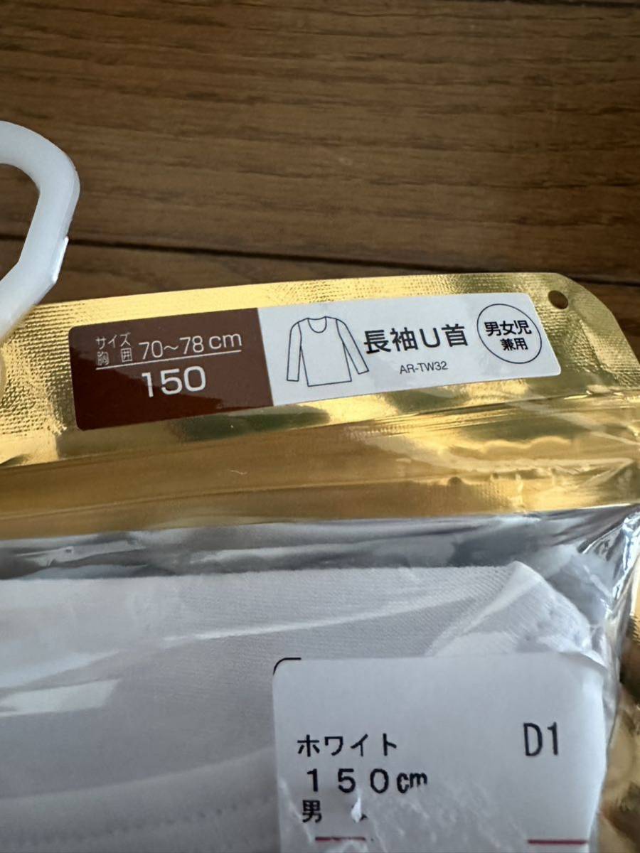 インナー 肌着 長袖 丸首 U首 Uネック 男女兼用 ヒートインナー 防寒インナー 下着 新品未使用 150サイズ