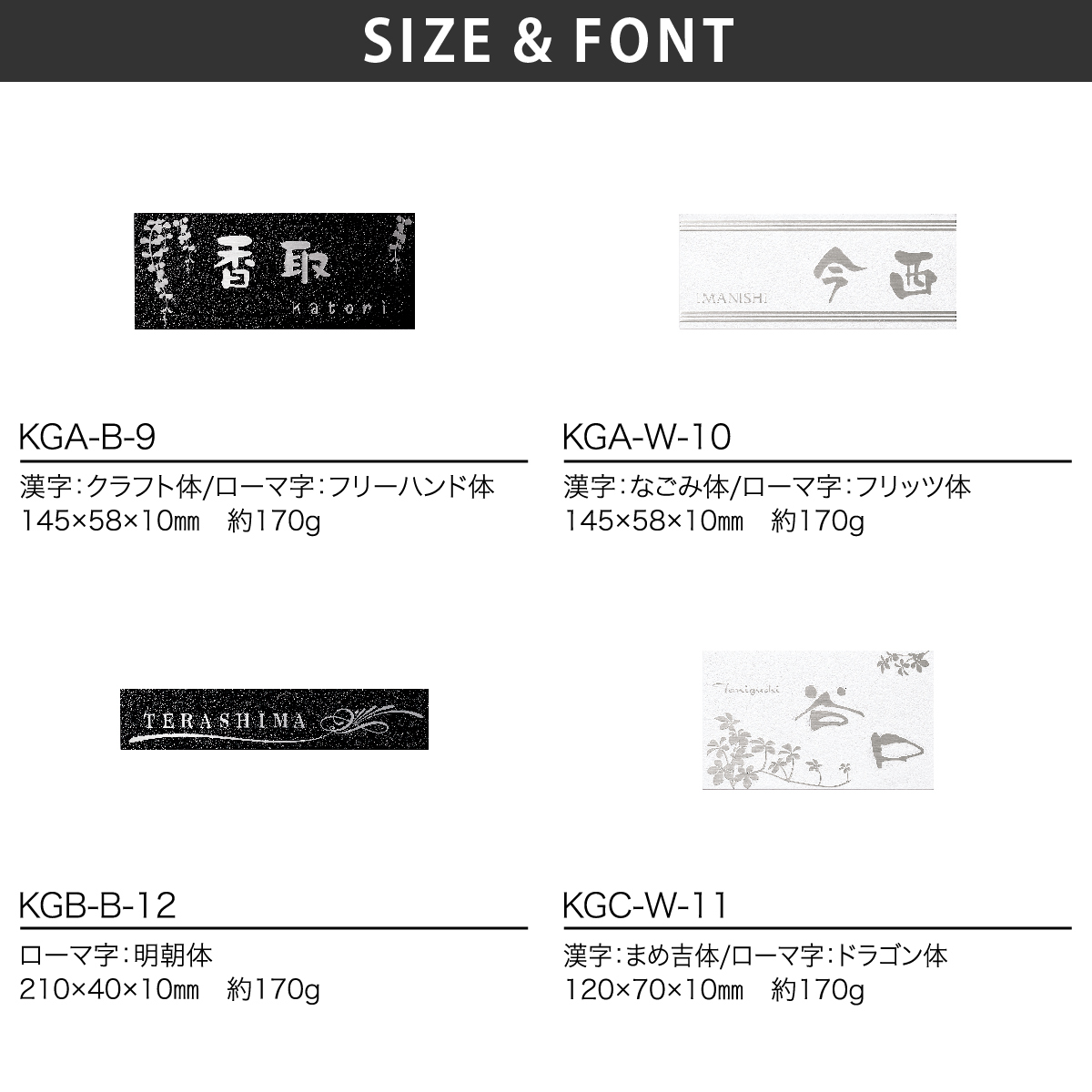 商品サイズ・重量 | KGA:約14.5×5.8×1.0cm(約170g) KGB:約21.0×4.0×1.0cm(約170g) KGC:約12.0×7.0×1.0cm(約170g) KGS:約15.0×15.0×1.0cm(約500g) KGL:約18.0×18.0×1.0cm(約750g) KGY:約20.0×8.0×1.0cm(約350g) |