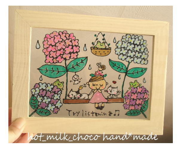 ★NO.L93★ステンドグラス風・2Lサイズ・紫陽花・花・雨・てるてる坊主・女の子・ブランコ・お団子結び・カエル・ハンドメイド・インテリア