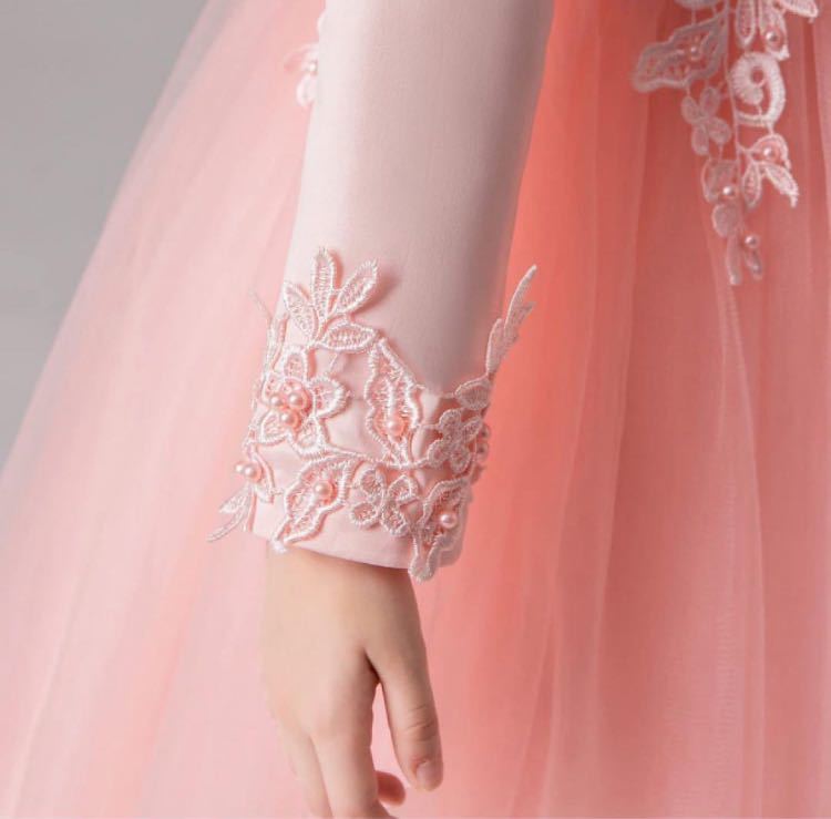 可愛い女の子のワンピース。シンプルな純色のコーディネートで、高級感と華やかな質感があります。春夏秋冬はすべて着ることができて、仕事は精致で、レースの生地、模様もあって、チュール重ねのスカートは、パニエなしでもフワフワとしたシルエットが示しています。