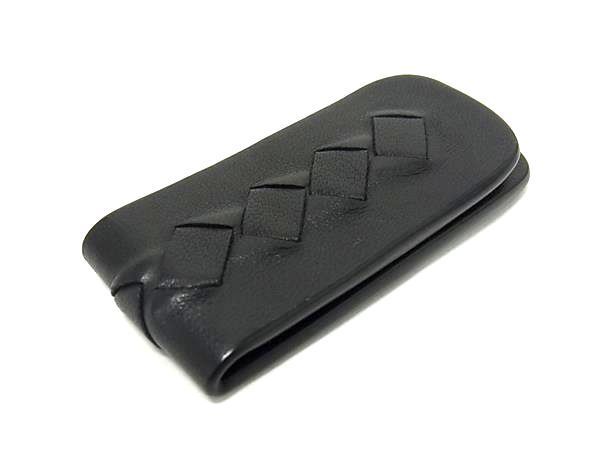 ■新品■未使用■ BOTTEGA VENETA ボッテガヴェネタ イントレチャート レザー マネークリップ 札ばさみ メンズ ブラック系 AX0394