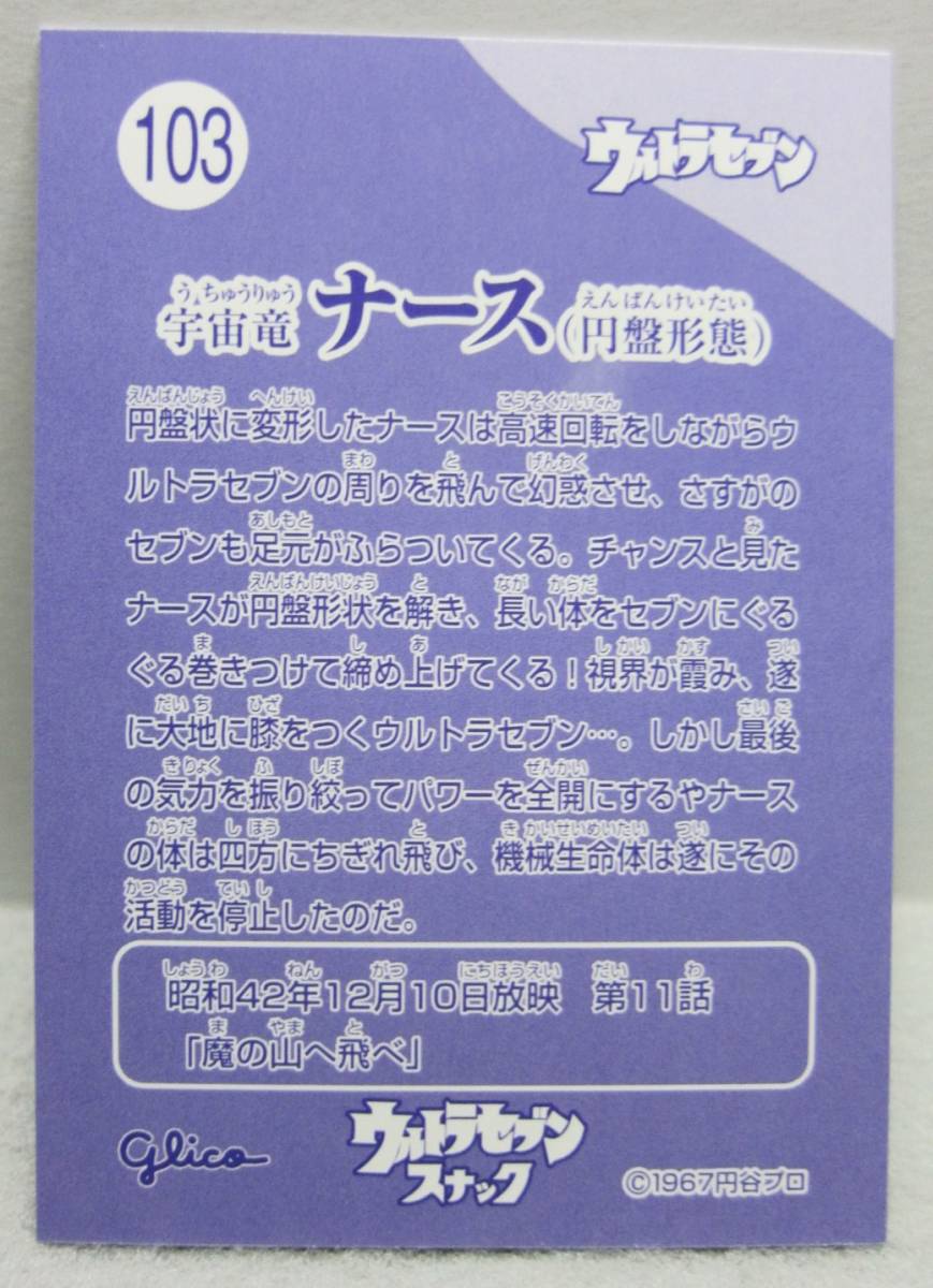 グリコ ウルトラセブン スナックカード●103.宇宙竜 ナース(円盤形態)●glico2002☆中古品☆☆