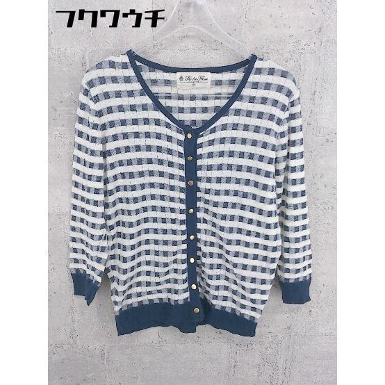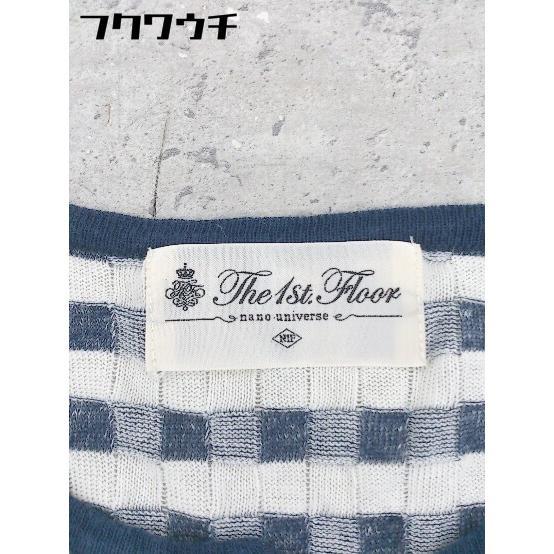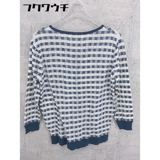 ◇ nano universe The 1st. Floor コットン ニット 七分袖 カーディガン サイズF オフホワイト ネイビー レディース