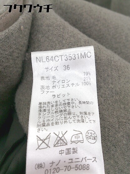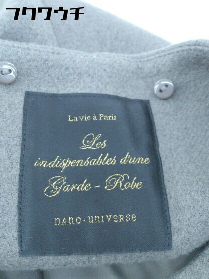 ■ garde Robe ギャルドローブ nano universe ノーカラー 比翼 コート サイズ36 ダークグレー系 レディース