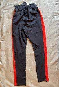 パンツは左ポケット下にオレンジマーク、裾上ジップ開閉、ウエスト総ゴムひも付き、メッシュの裏地付きです。