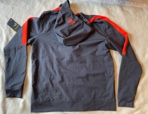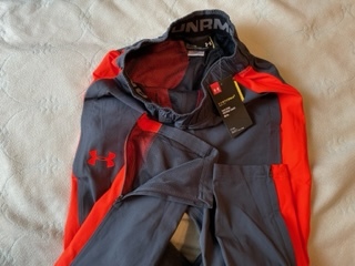アンダーアーマーの撥水ジップアップジャケット上着とロングパンツの上下セット、メンズサイズMD新品です。