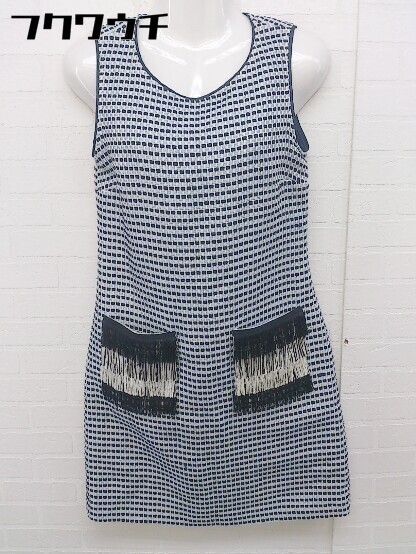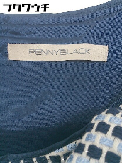 ◇ PENNYBLACK ペニーブラック ノースリーブ 膝丈 ワンピース サイズ I 40 USA 04 ネイビー オフホワイト レディース