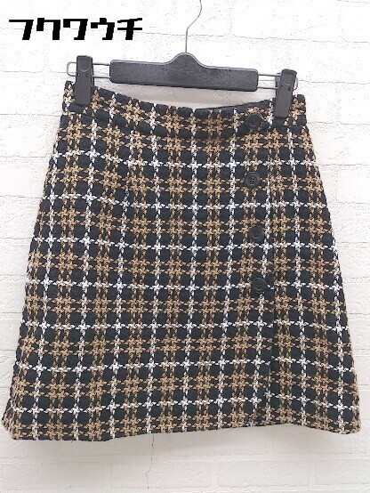 ◇ Rirandture リランドチュール バックジップ 総柄 ミニ 台形 スカート サイズ1 ブラック マルチ レディース