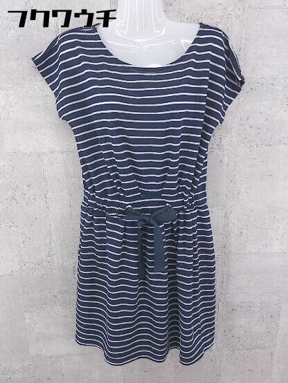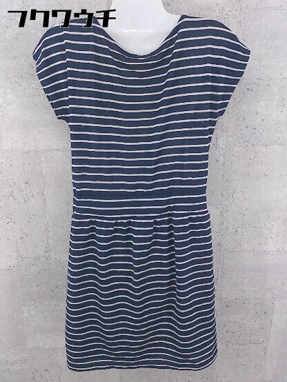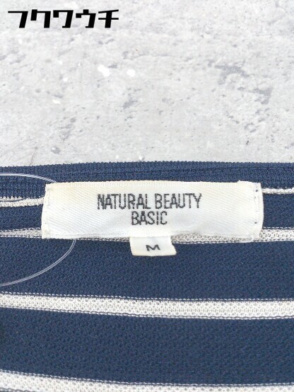 ◇ NATURAL BEAUTY BASIC ボーダー フレンチスリーブ 膝丈 ワンピース サイズM ネイビー ホワイト レディース