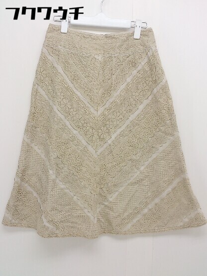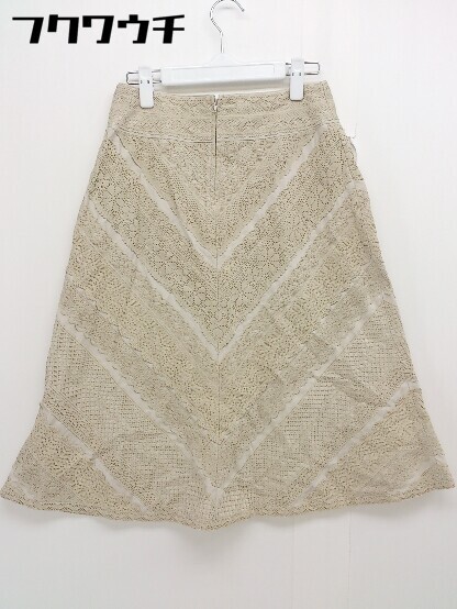 ◇ 23区 ニジュウサンク バックジップ 総柄 レース 膝丈 フレア スカート サイズ38 ベージュ レディース