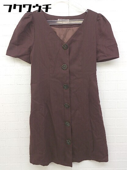 ◇ one after another NICE CLAUP リネン混 Vネック 五分袖 膝丈 ワンピース サイズF ブラウン系 レディース