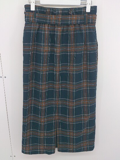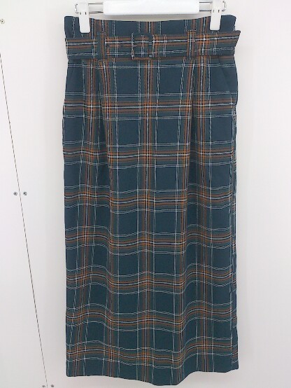 ◇ ◎ LOWRYS FARM ウエストベルト付き チェック ロング タイト ナロー スカート サイズL グリーン系 レディース