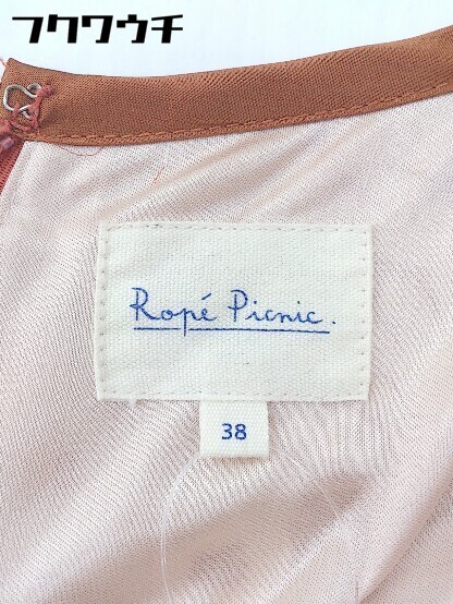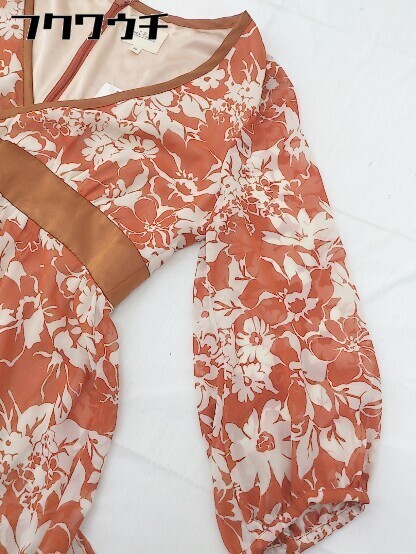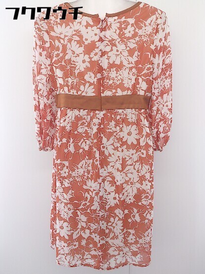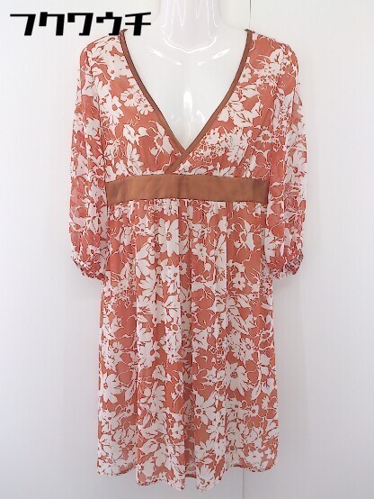 ◇ ROPE' ロペ 花柄 七分袖 ミニ ワンピース サイズ38 オレンジ ホワイト ブラウン系 レディース