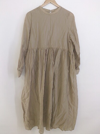◇ Aunt Marie's アントマリーズ バンドカラー 長袖 膝下丈 ワンピース サイズS ベージュ系 レディース P