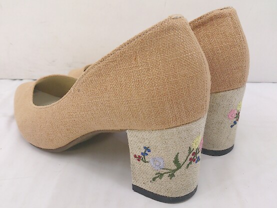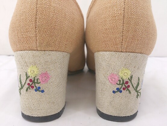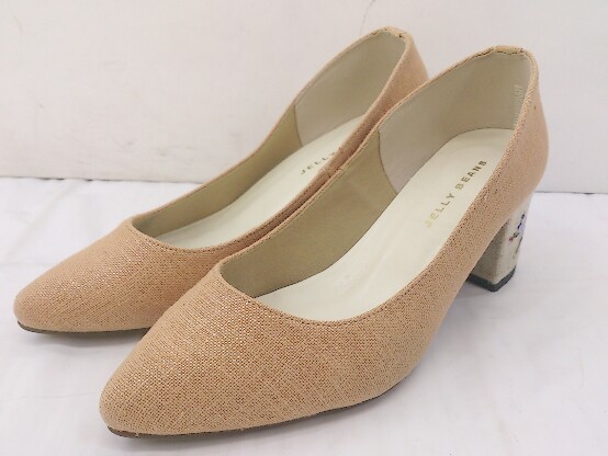◇ JELLY BEANS ジェリービーンズ ラウンドトゥ ロゴ 刺繍 パンプス 23cm ベージュ系 レディース