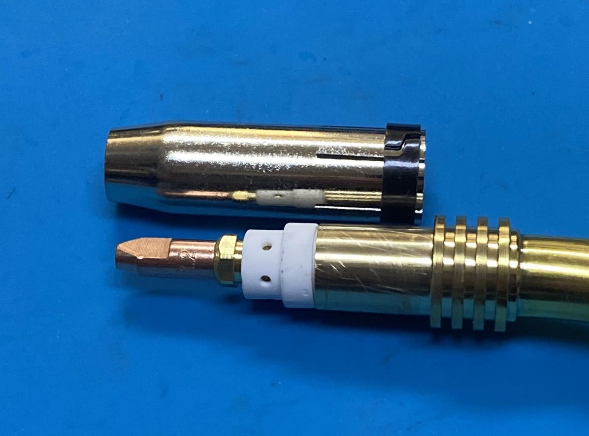 E-CuコンタクトチップなのでCuCrZrコンタクトチップよりも2g程度は重く材質はアルミ溶接専用