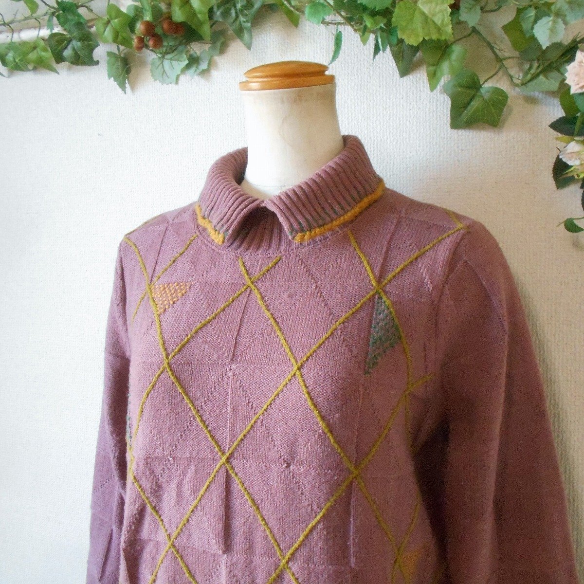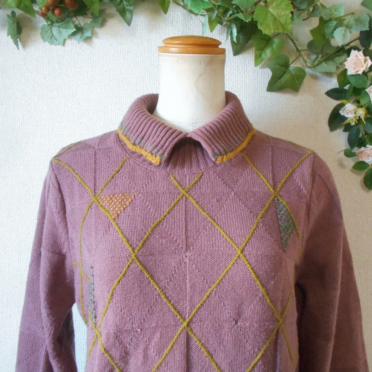【ポイント】ホコモモラのレディース用セーターになります。お色は渋いピンク系ベースで秋冬を中心に着ていただけるお品です。