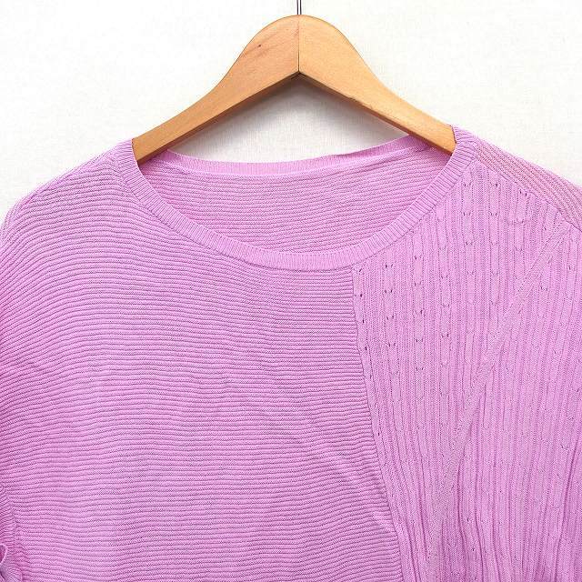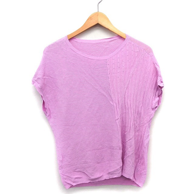 ロペ ROPE ニット カットソー 切替 アシンメトリー リブ 半袖 丸首 M ラベンダーピンク /HT12 レディース