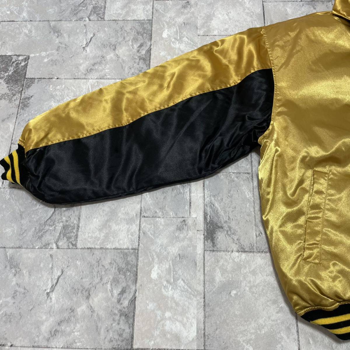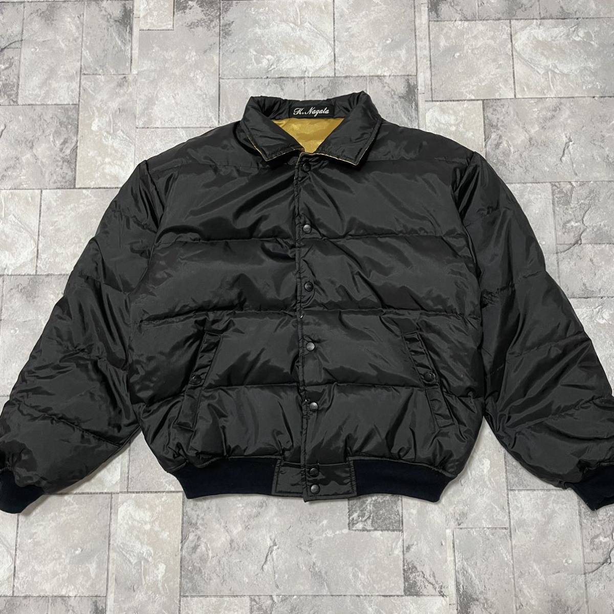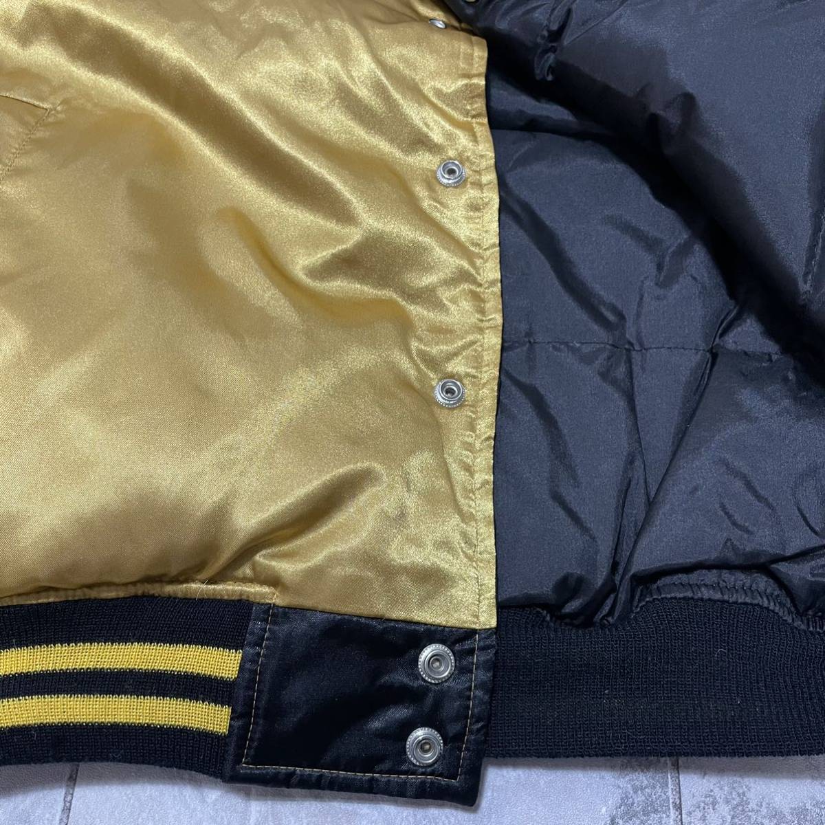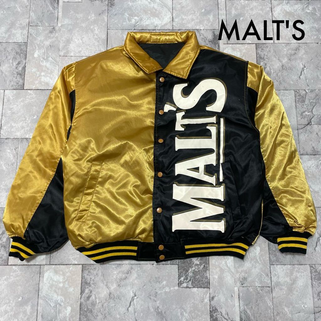 MALT'S モルツ スタジャン ナイロン ダウンジャケット 企業物 肉厚 ビッグプリントロゴ ゴールド サイズL 玉SS1461