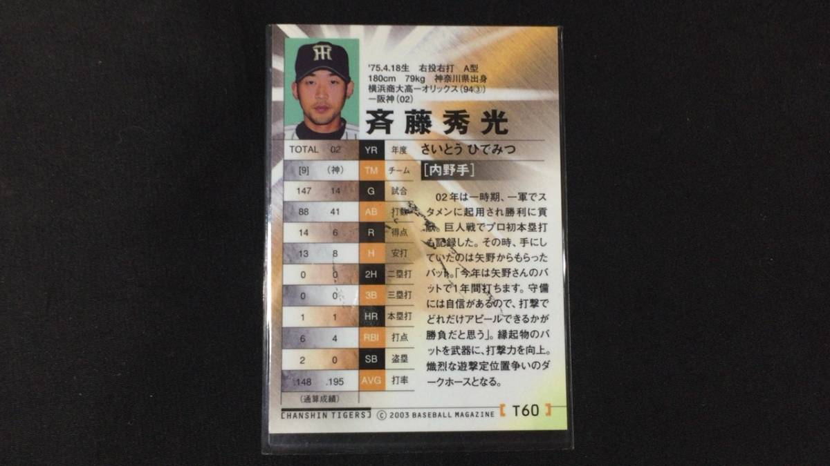 【直筆サイン入りBBM46】斉藤秀光2●阪神タイガース●検)プロ野球カードルーキーベースボールマガジンカルビートレーディングカード