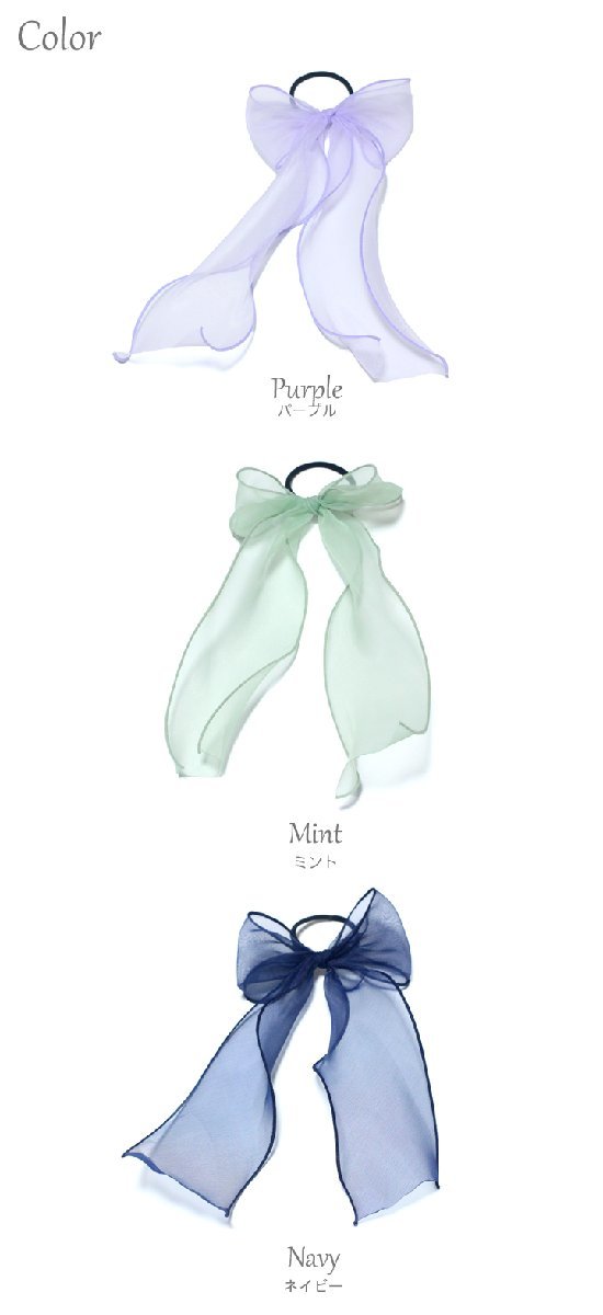 商品説明 | オーガンジーロングリボンヘアゴム。 ふんわり風になびくフェミニンスタイル♪ いつものポニースタイルもこれ1つでおしゃれ感が増すこと間違いなしです☆ |