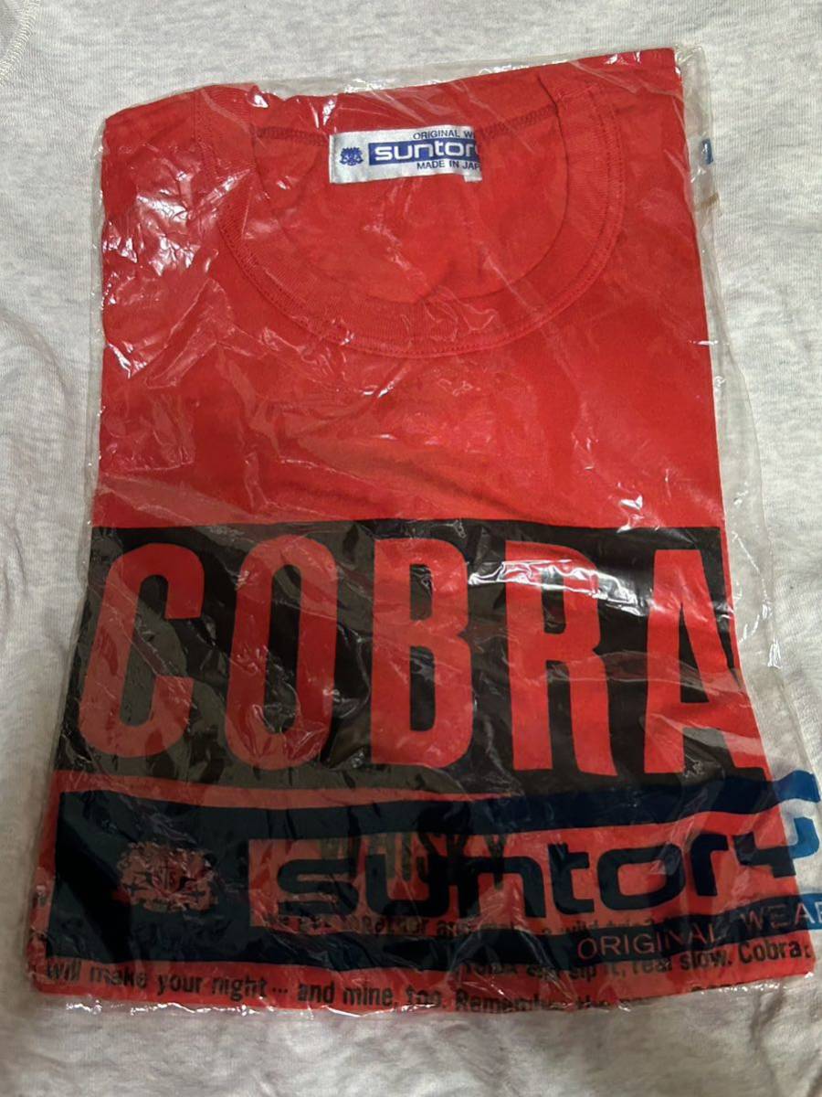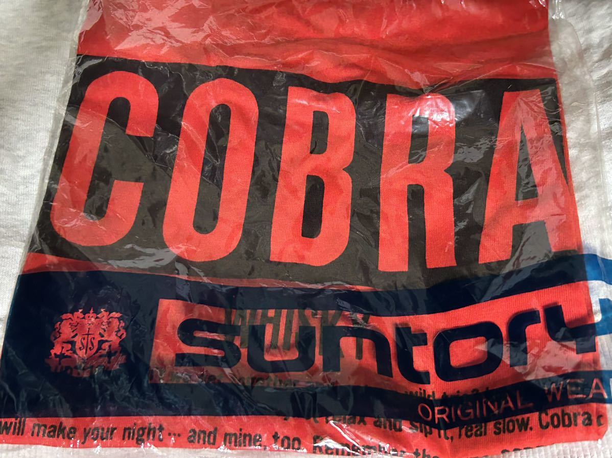 1980年代にサントリーから発売されていたウイスキー「COBRA」のロゴマーク入りTシャツです。当時の販促非売品になります。お色は明るめのレッドにブラックのロゴプリント。当時から未開封なので、サイズは不明です。貴重な非売品、ジャパンヴィンテージ!日本製のお品物です♪