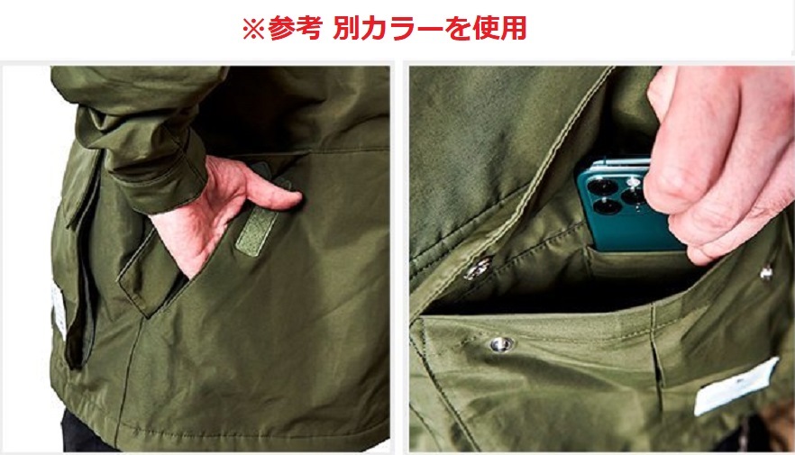前立ての裏側や、背中にもポケットが付いており、収納力も高いアウターです。
