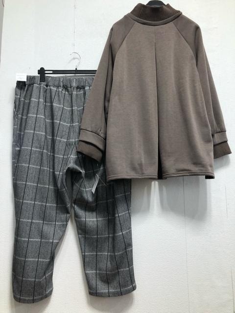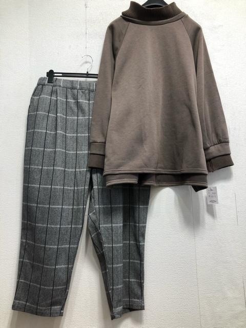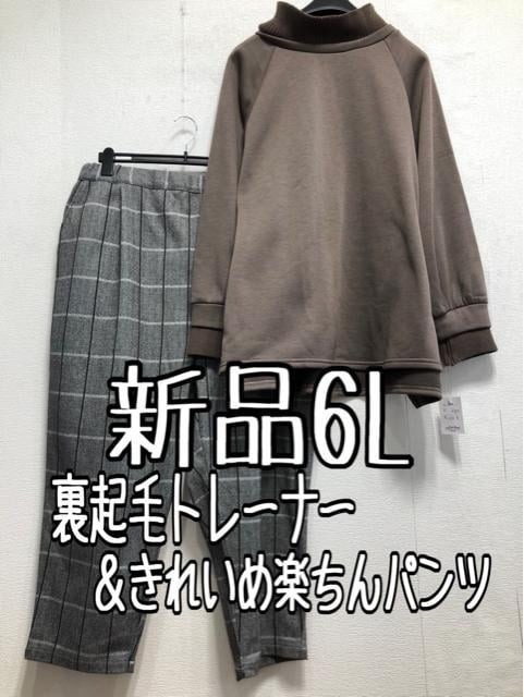 新品☆6L♪裏起毛プルオーバー&ウール調セミワイドパンツ☆r228
