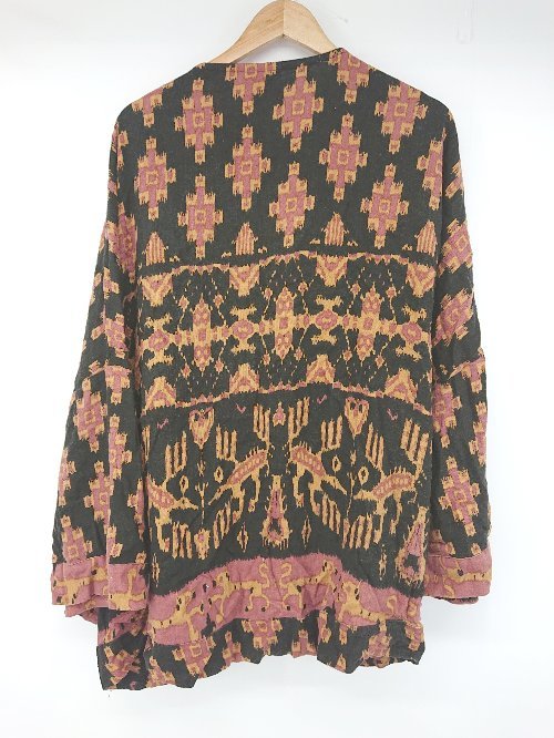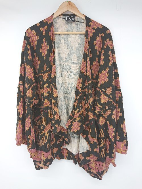 ◇ Fairground フェアグランド リネン混 総柄 長袖 カーディガン ブラック ベージュ レディース P