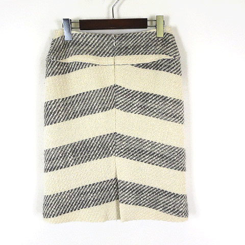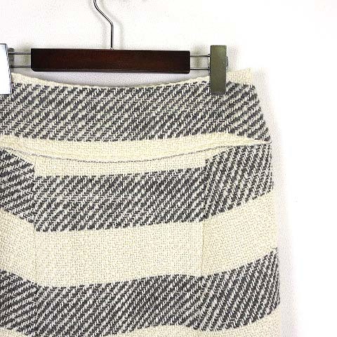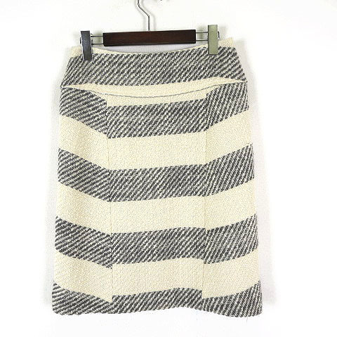 コムサデモード COMME CA DU MODE スカート ニット ツイード ウール ボーダー ひざ丈 M 9 アイボリー グレー レディース