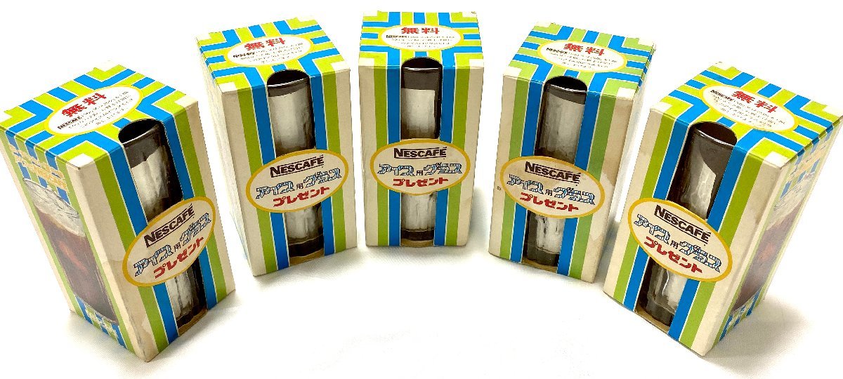 新品 未使用 ネスカフェ アイス用グラス タンブラー ガラスコップ 5個セット 5客セット 模様 昭和レトロ /イ