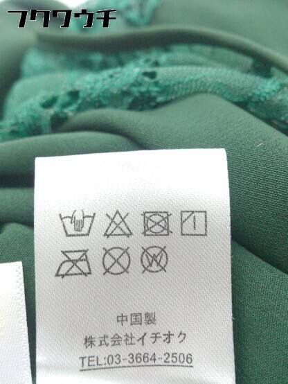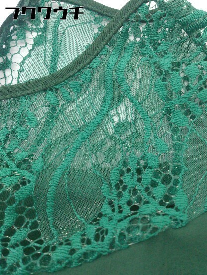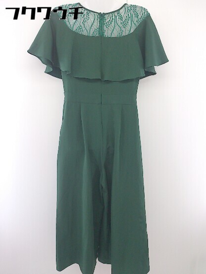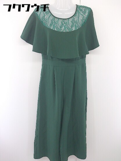 ◇ merlot plus メルロープリュス バックジップ 切替 レース 半袖 オールインワン サイズM グリーン レディース