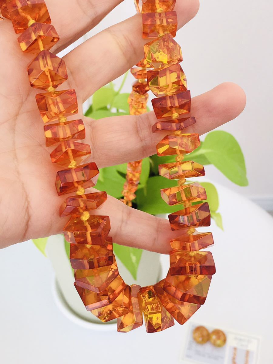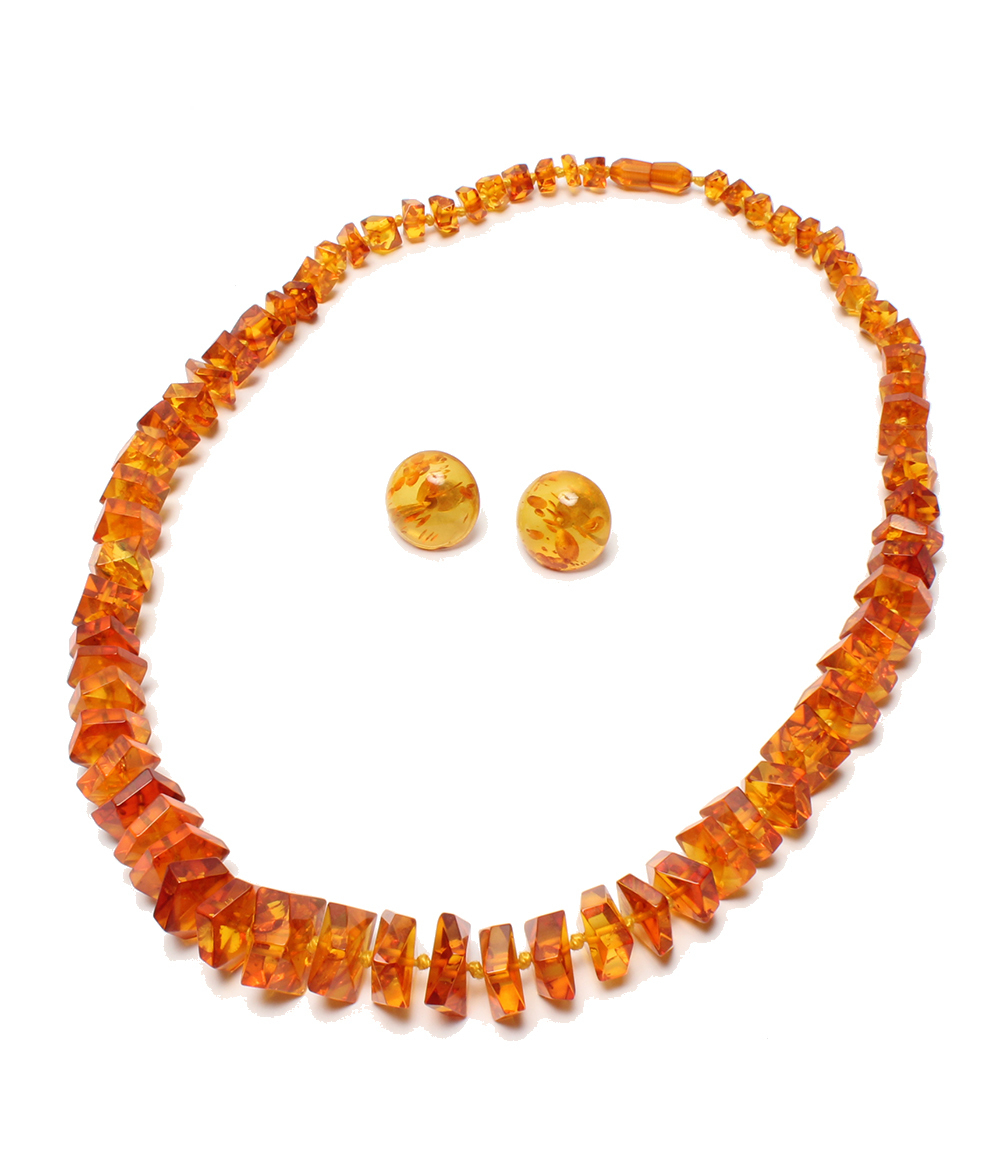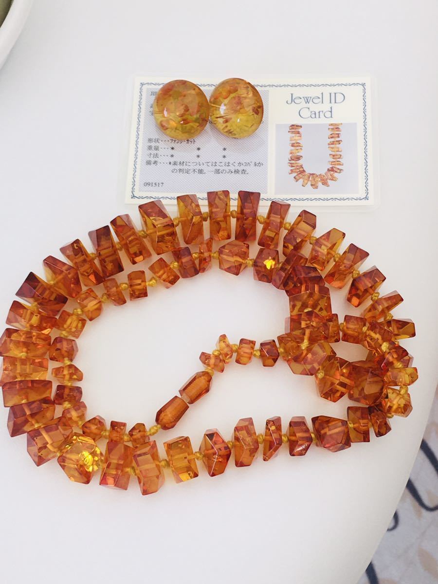 アンバー、琥珀 ネックレス イヤリング 2点セット K18