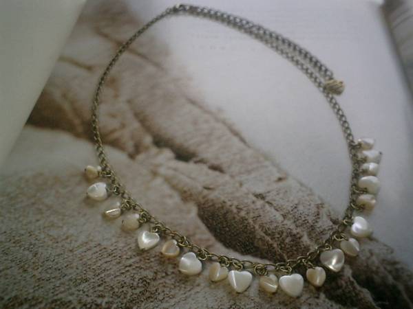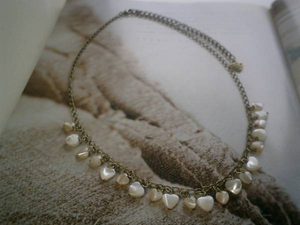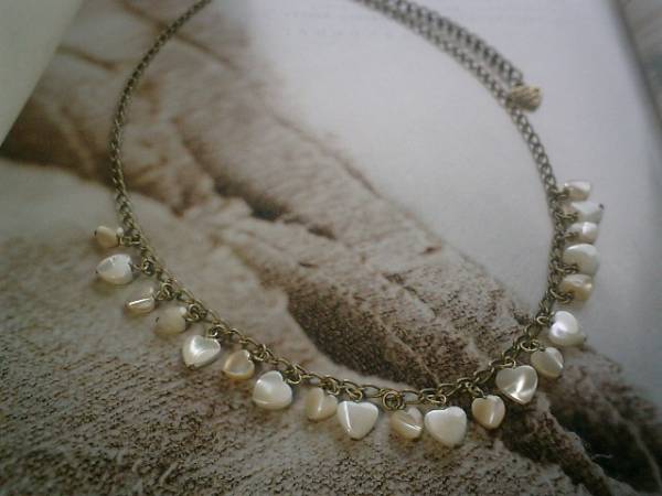 薔薇の香りの女の子・・シリーズです♪オフホワイトのマザーオブパールのネックレスです♪♪7ミリ、9ミリの大きさ違いのハートのマザーオブパールはランダムに繋いでキュートな表情です♪長さは全長57センチ位で調節自由です♪チョーカー風にされてもブレスにされても可愛いです♪お揃いのネックレスやブレスレットやイヤリングも出品しています♪♪シンプルで長く着けていただけるデザインを考えて作りました♪ハンドメイドをご理解頂いてノークレーム、ノーリターンでお願いします