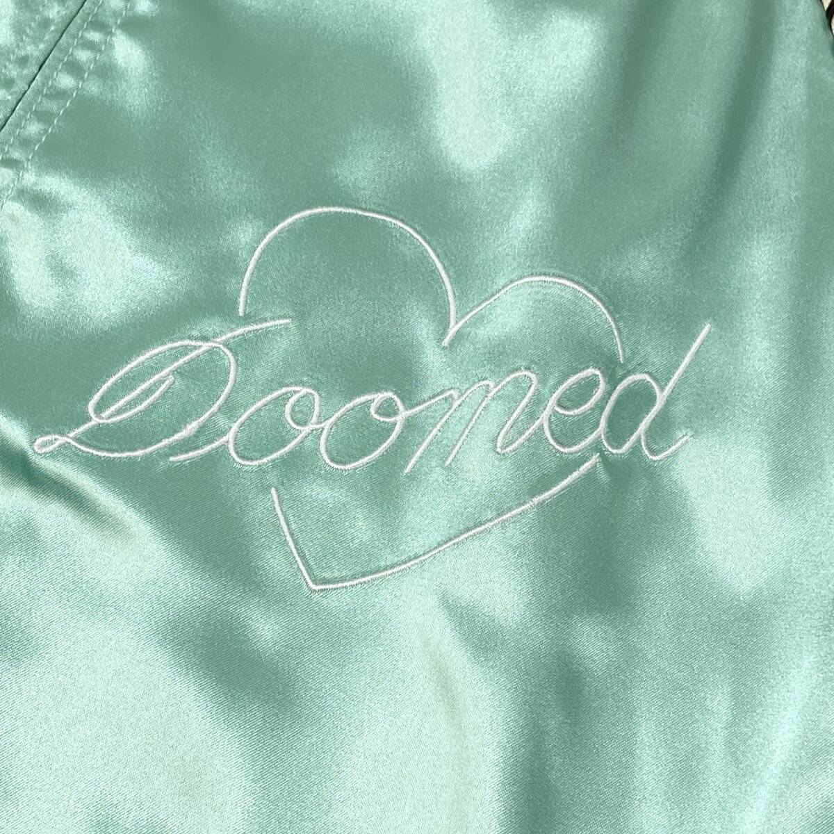 光沢のあるポリエステル素材を採用し、左胸に「運が尽きた」、「絶望的」を意味する文字を刺繍で配置。
