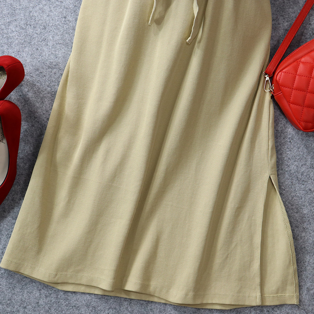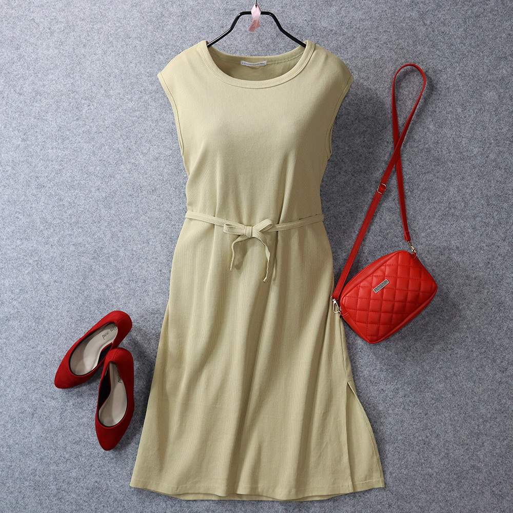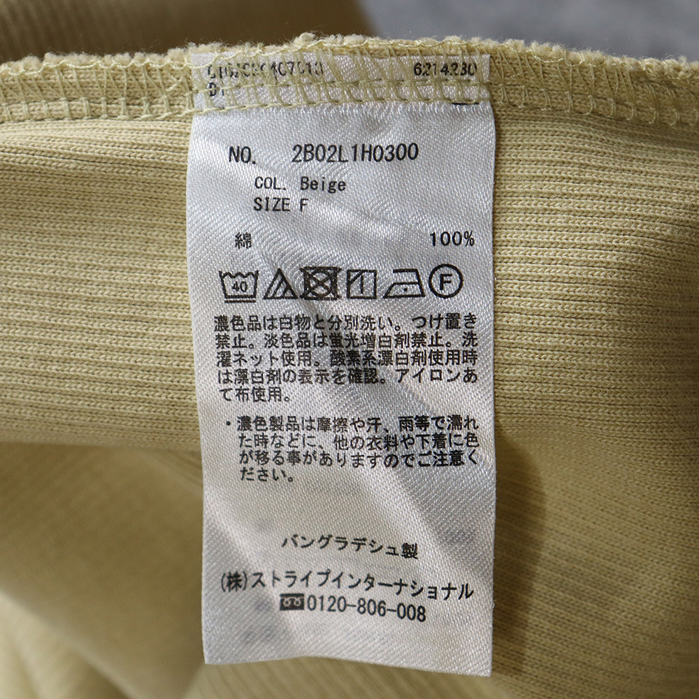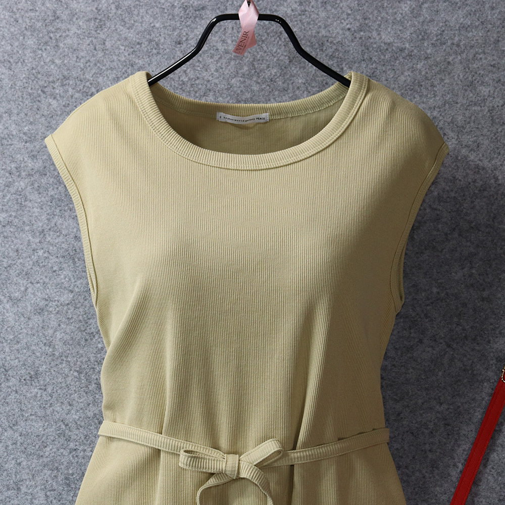 イーハイフン|E hyphen world gallery 細リブ フレンチスリーブ チュニック ロング ワンピース ベルト付 ベージュ コットン ミモレ丈 FREE | |||