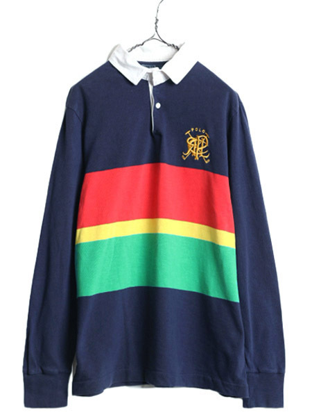 | 商品名 | ポロ ラルフローレン 長袖 ラガーシャツ メンズ L / 古着 POLO 長袖シャツ ラグビー ヘビーウェイト マルチカラー ボーダー ワンポイント |