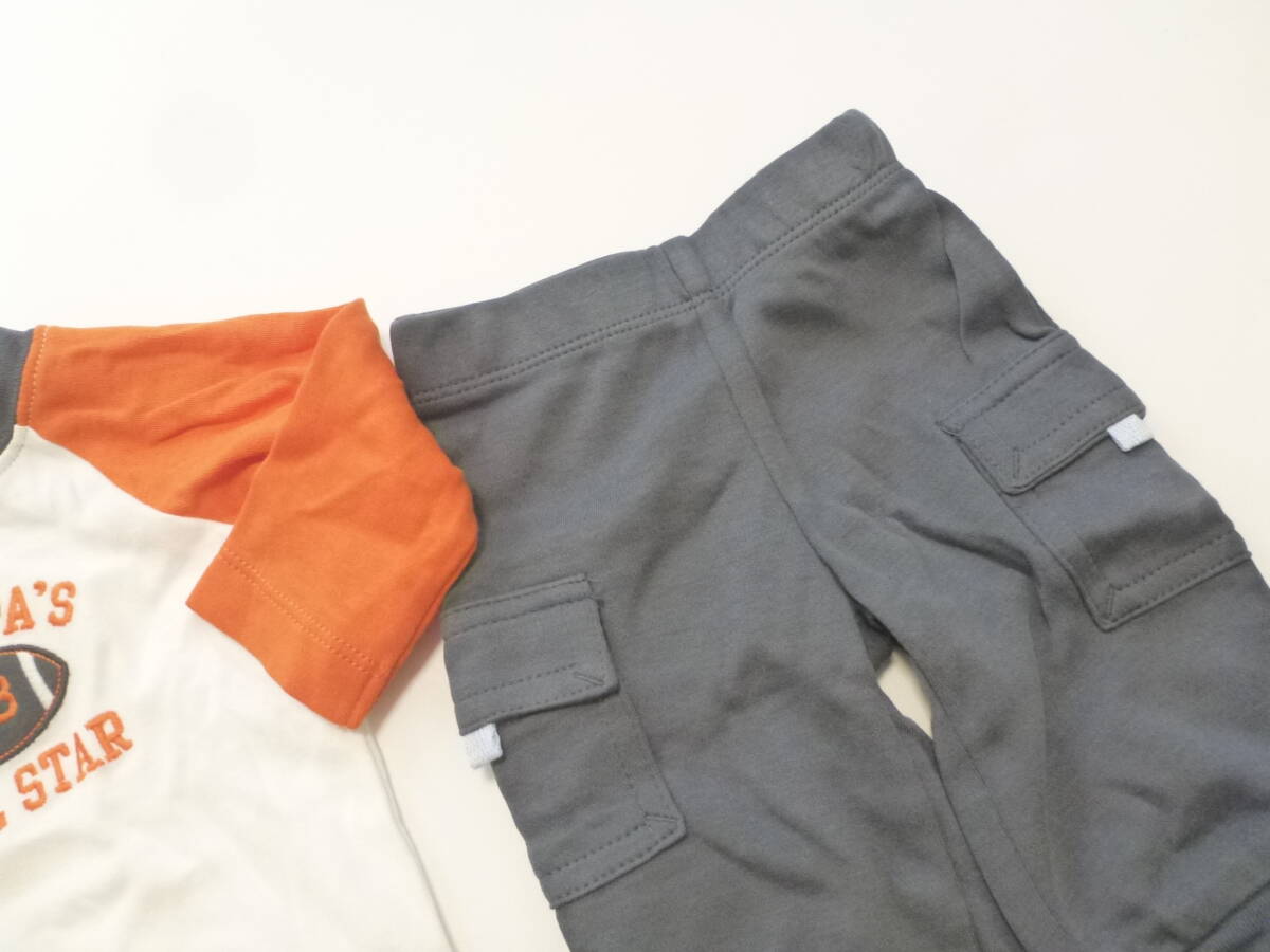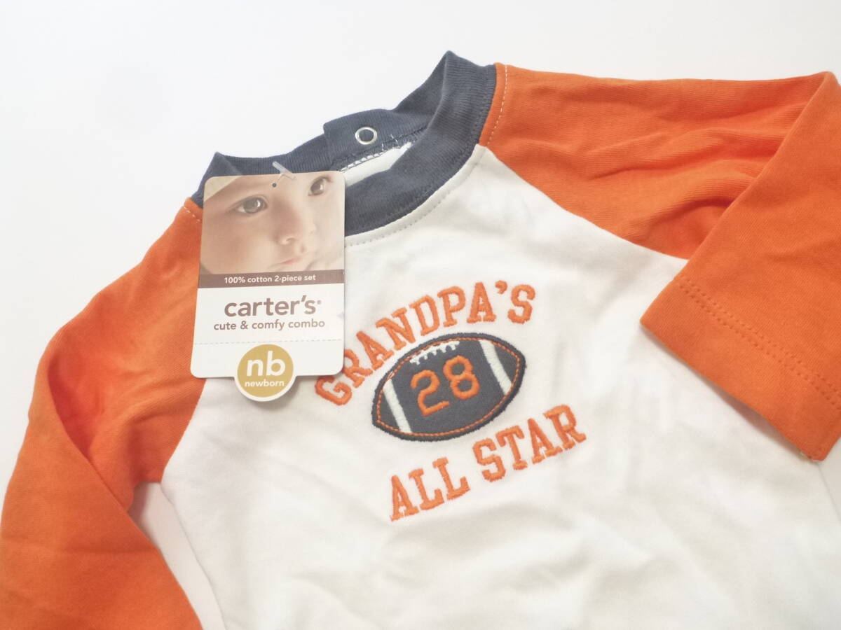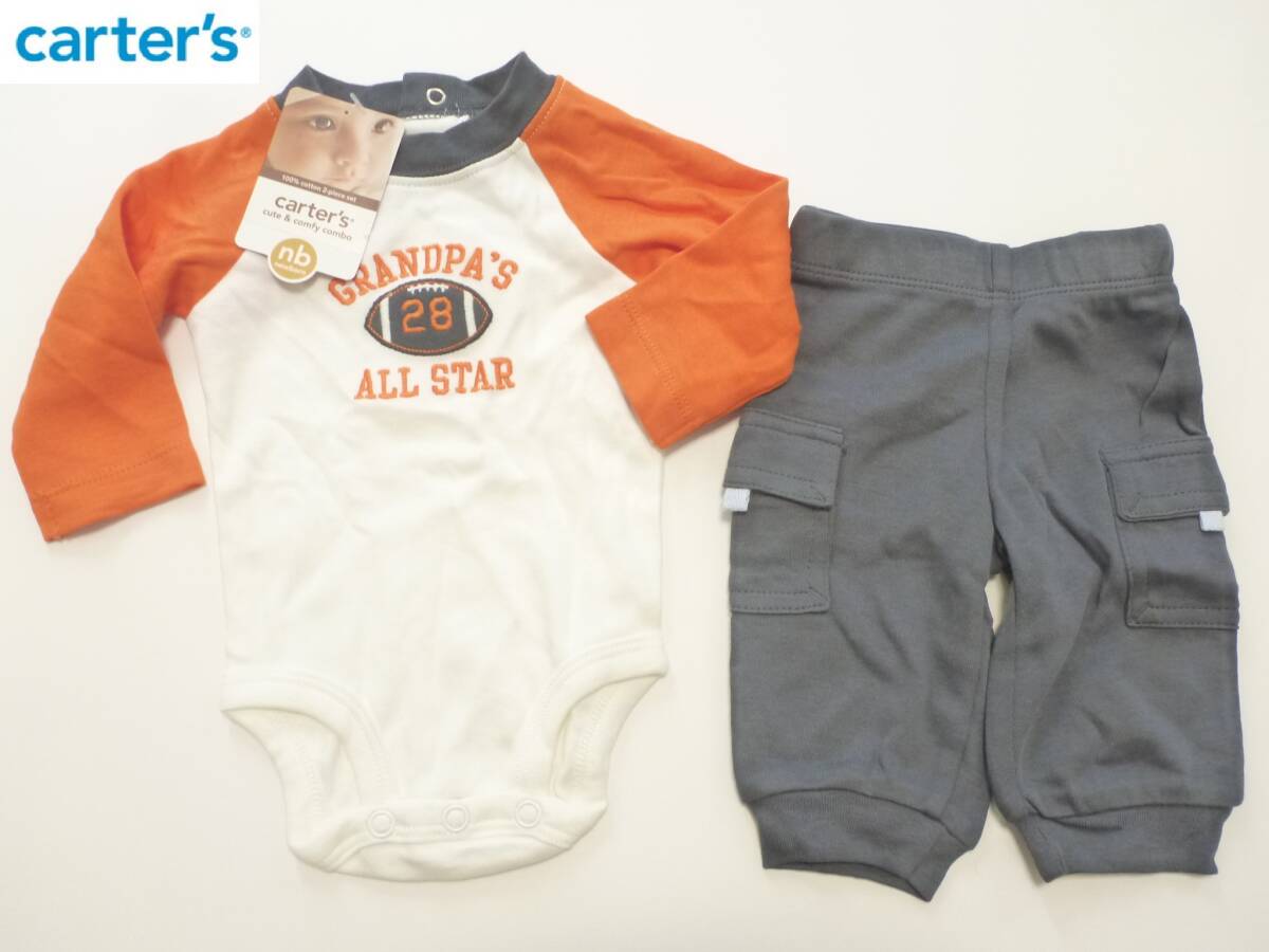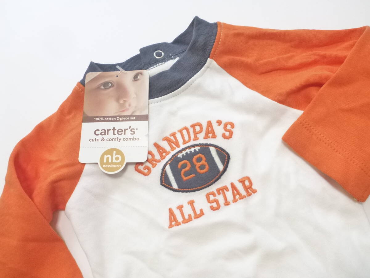新品carter's カーターズ ★人気ブランド お出かけ オレンジ×グレー×白 アメフト 刺繍 長袖 上下セットアップ nb 50 新生児用