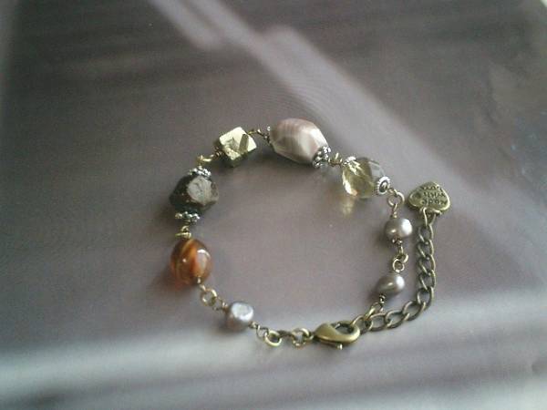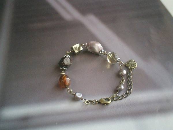 シベールのこだわり・・シリーズです♪パールで始まる物語Ⅲ・・神秘的なモーヴグレーの淡水パールにガーネットやレモン水晶やボツワナアゲートやパイライトやカーネリアンなど繊細で個性的な石を合わせてロマンチックなブレスレットです♪淡水パールは6ミリ位のバロックです♪ガーネットは10ミリ位のタンブル、カーネリアンはナツメ、ピンクボツワナアゲートは15ミリ位のラフカット、パイライトは10ミリ位のラフカット、レモン水晶は10ミリのランダムカットです♪シックでオリエンタルモダンな表情です♪長さは全長23センチ位で調節自由です♪♪お揃いのネックレスも出品しています♪シンプルで飽きのこないいつまでも着けられるデザインを考えて作りました♪ハンドメイドをご理解頂いてノークレーム、ノーリターンでお願いします