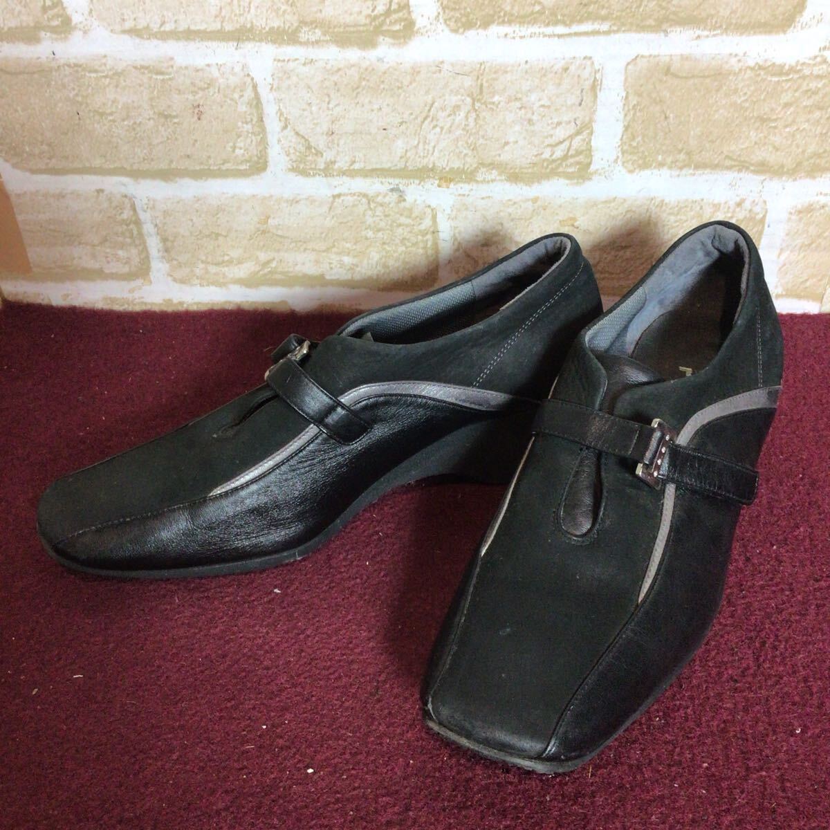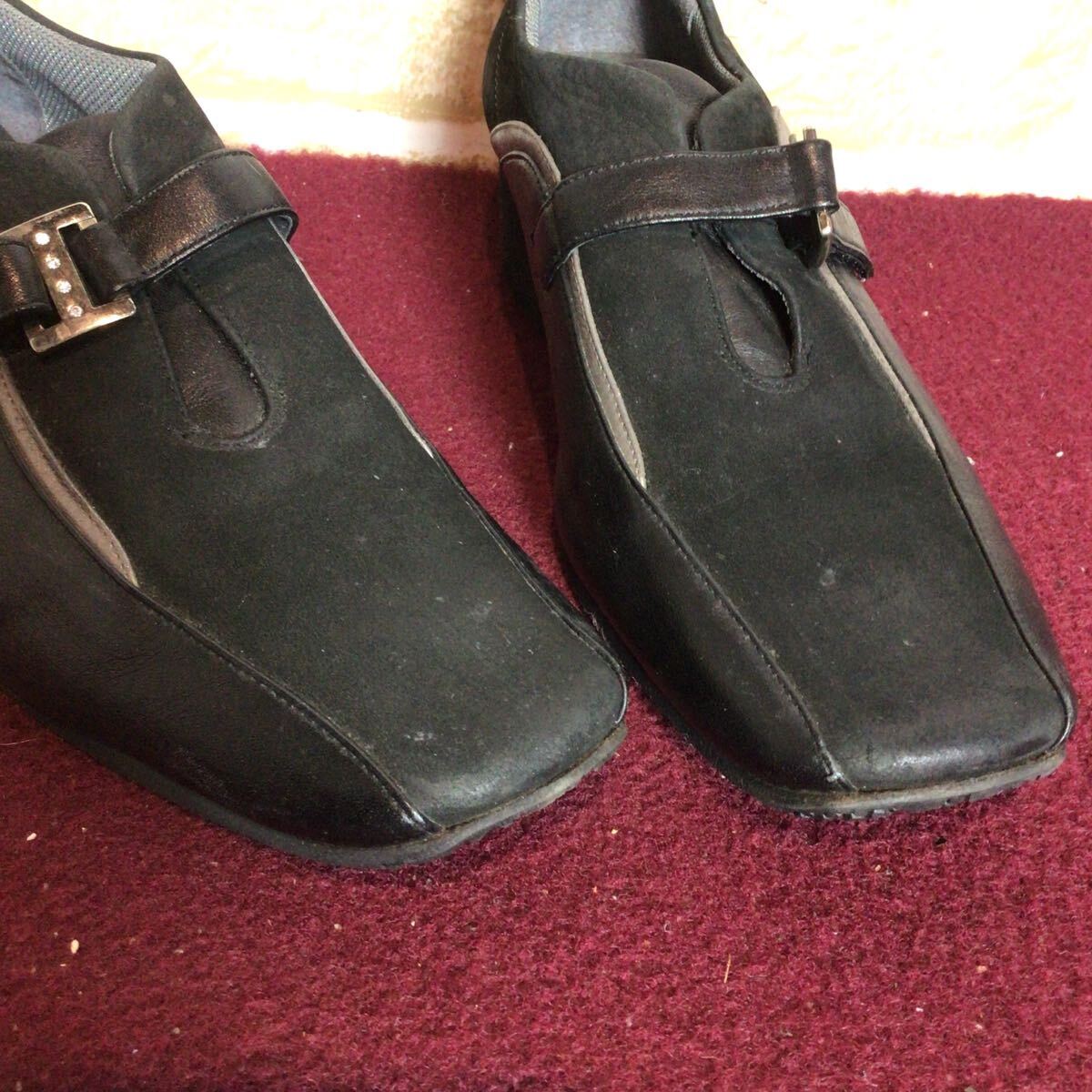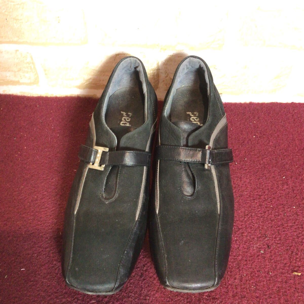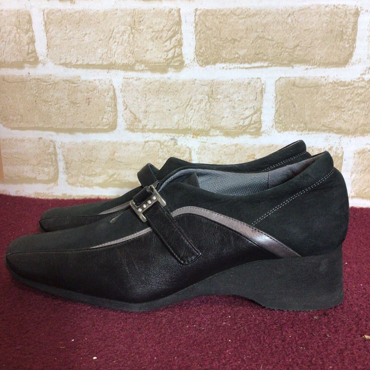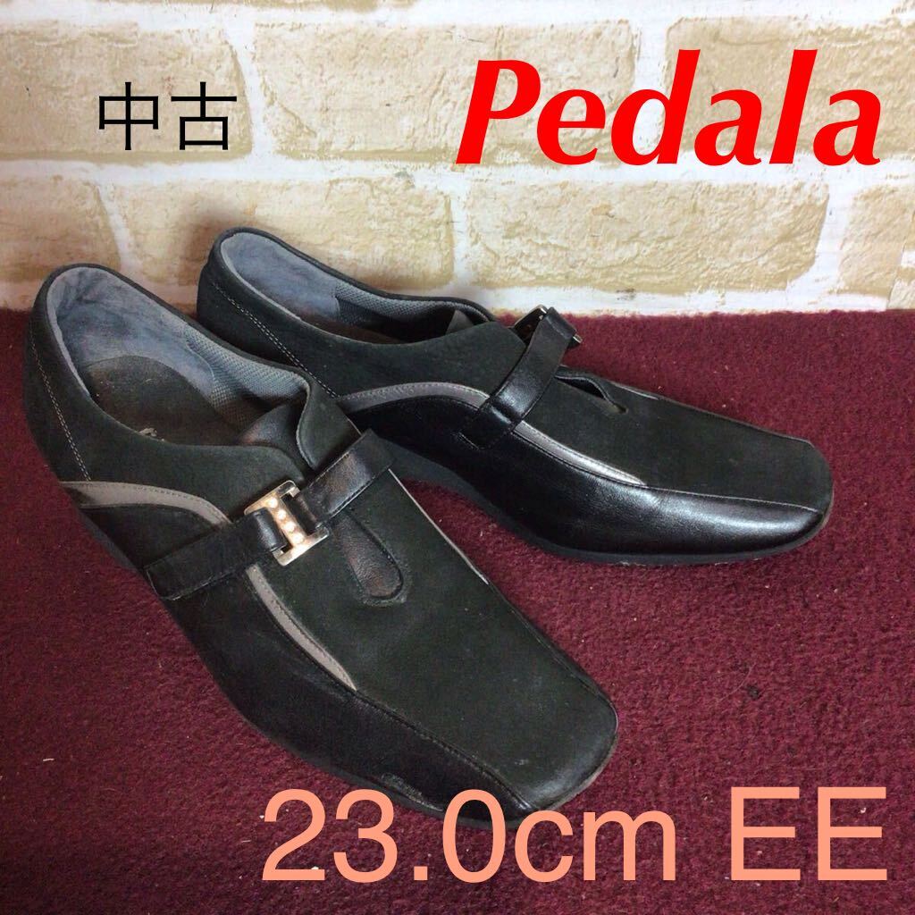 【売り切り!送料無料!】A-354 Pedala!カジュアルシューズ!黒!ブラック!23.0cm EE!スエード!スムース!ベルト!異素材!中古!