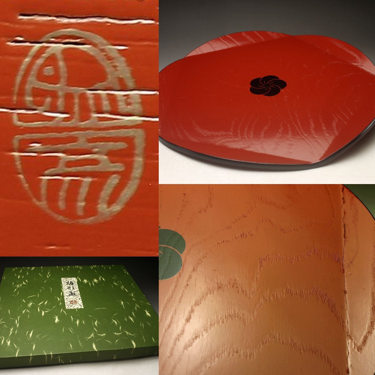 【余韻】 平安象彦 天然木製 梅形盆★化粧箱 茶道具<同梱可>